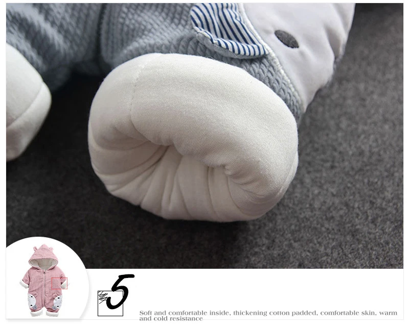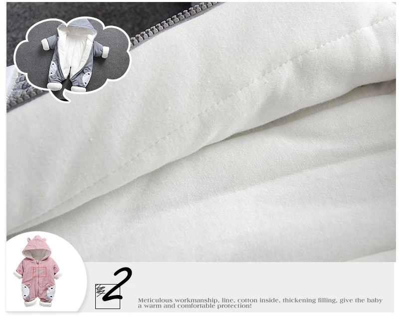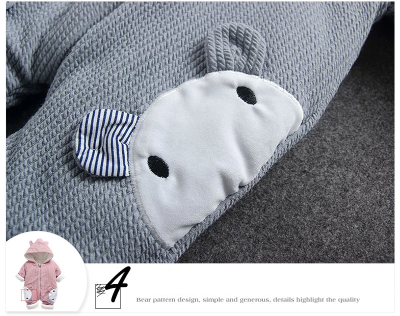 Adorable and durable, this Baby Romper in light pink or grey makes the ultimate style this winter. A cute combination of a romper and cute animal print. This style boasts complete coverage and comfort. The attached hood leads to keeping your baby's head protected and warm whereas the full-length front zip allows for easy diaper changes.