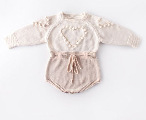 Keep your little joy of bundle all warm and toasty for the cold seasons with these cute Lovely Heart Knitted Rompers.